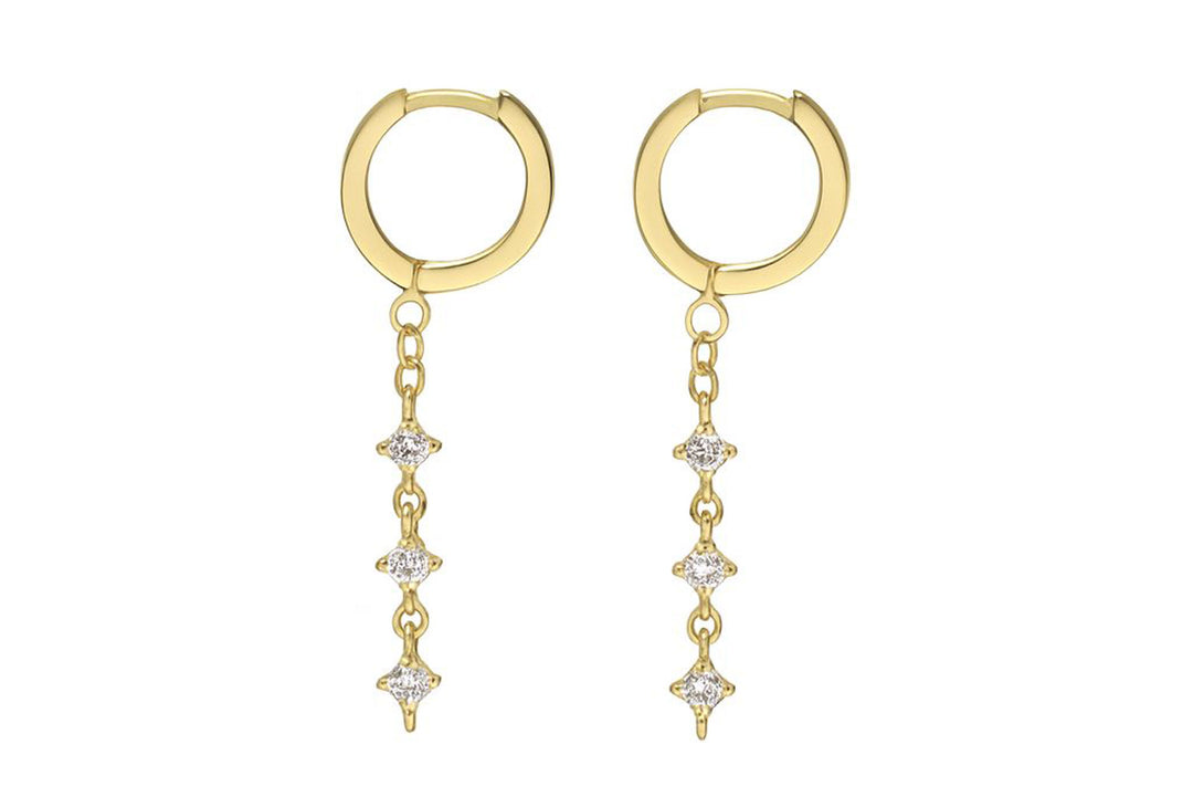 עגילי חישוק עם שרשרת יהלומים תלויה